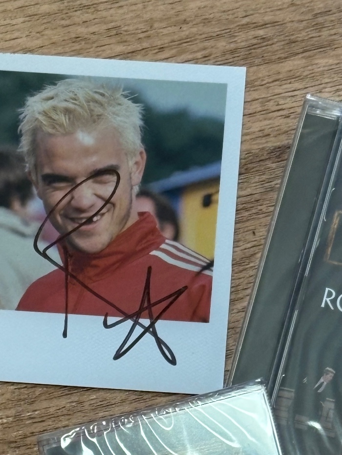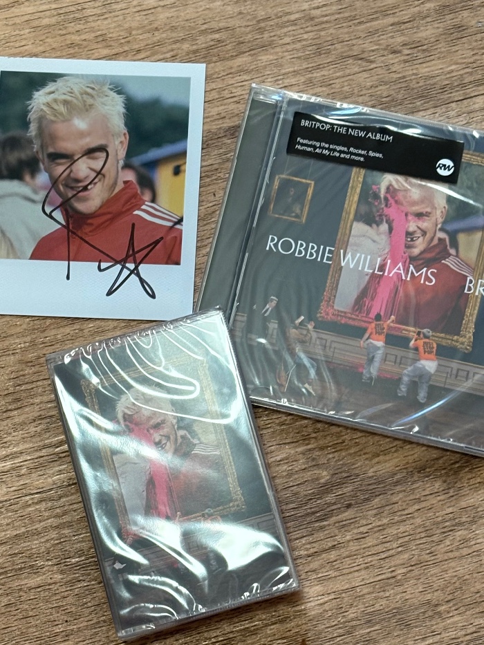 Robbie Williams Brit Pop CD and cassette with SIGNED photo