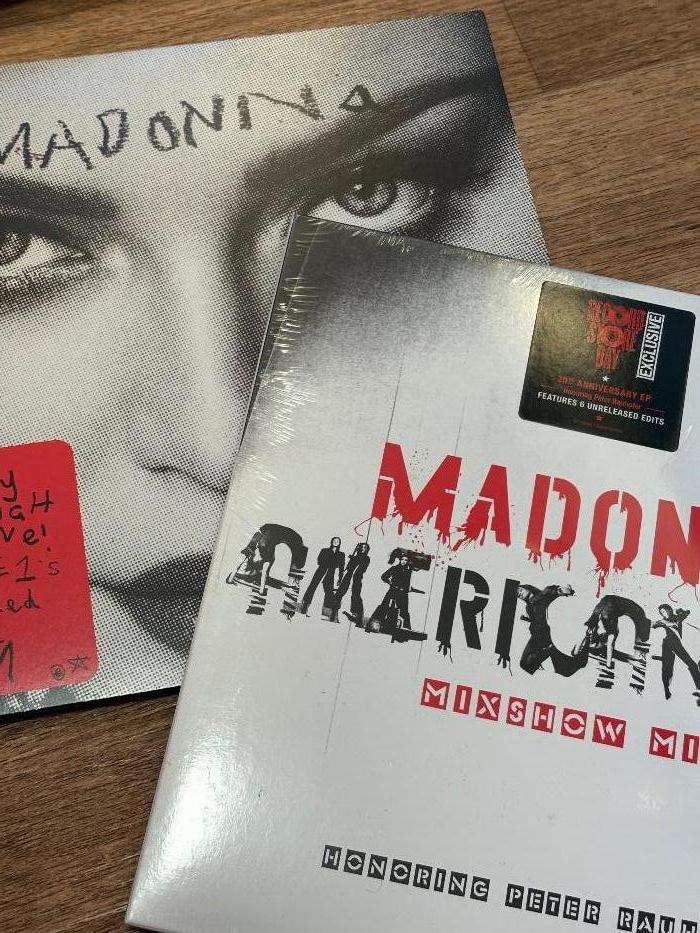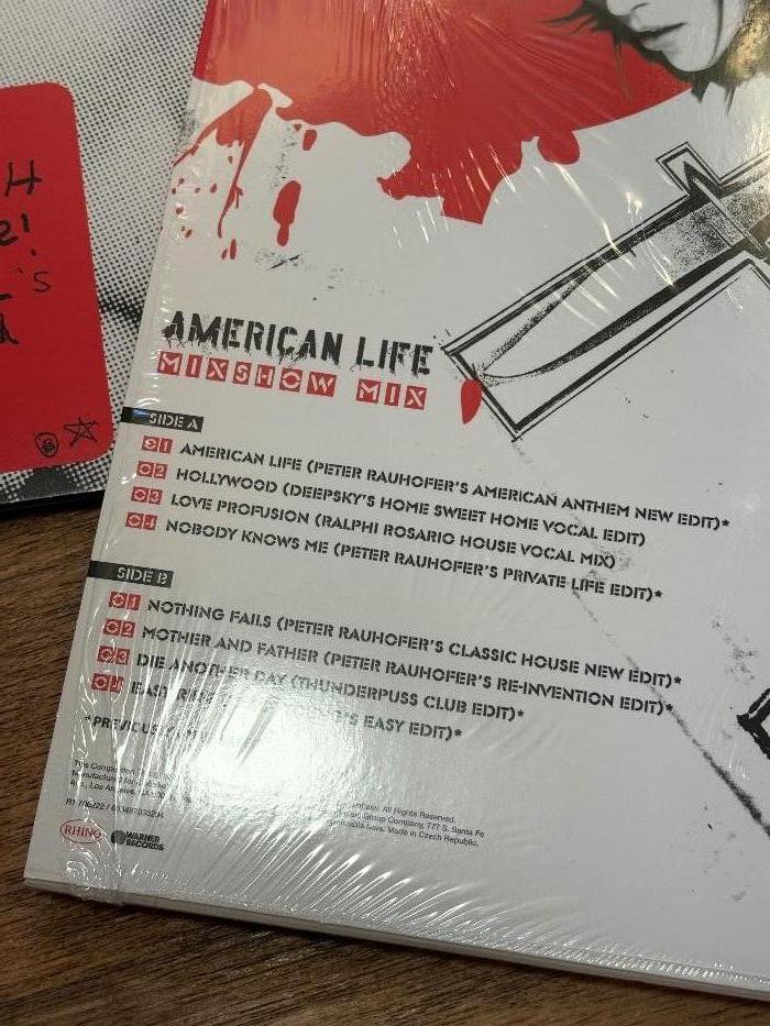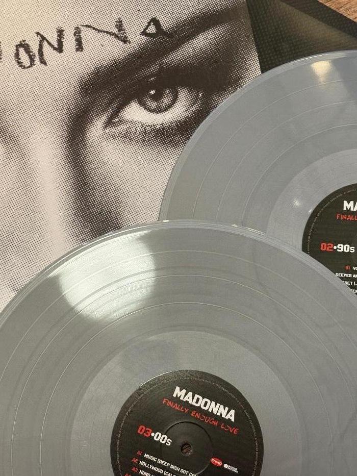 Double silver vinyl copy of Finally Enough Love, compilation album, plus American Life remixes RSD 12” single.
