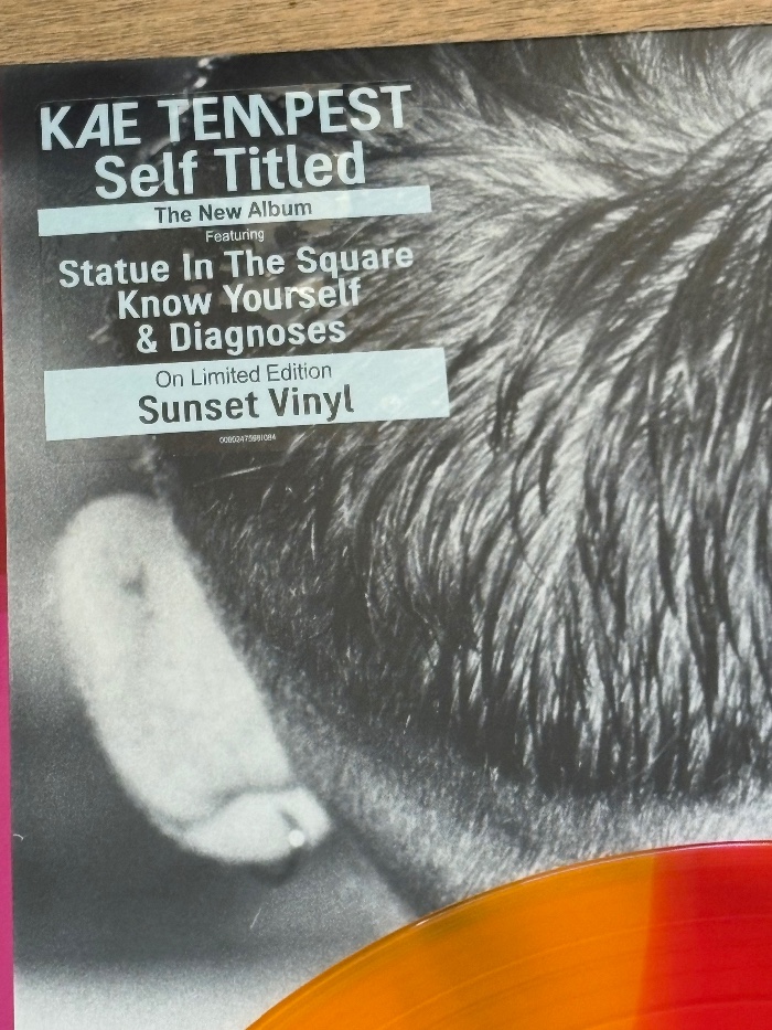 Coloured vinyl and deluxe CD of Kae Tempest’s 2025 album, Self Titled, plus a signed 12 x 12 print