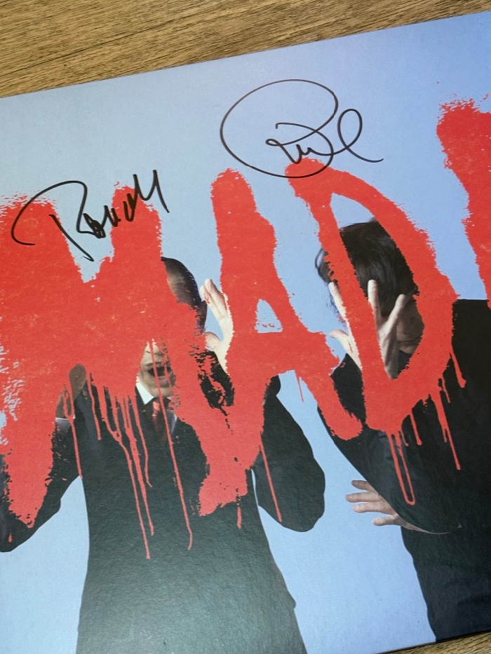Black vinyl copy of Spark’s 2025 album, Mad… signed by Ron and Russell Mael.