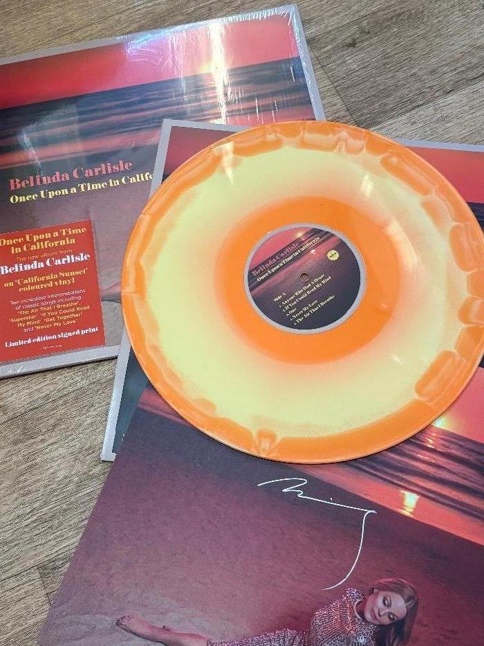 Coloured vinyl copy of Belinda’s 2025 album, Once Upon a Time in California plus a signed 12 x 12 print.