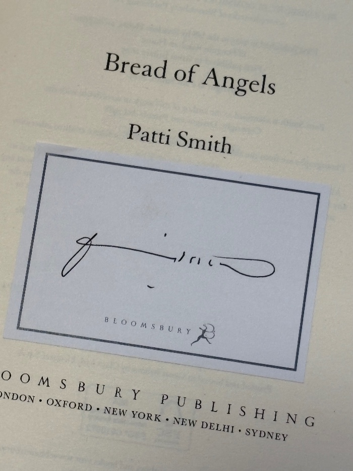 A signed copy of Bread of Angels, the 2025 memoir by the legendary Patti Smith