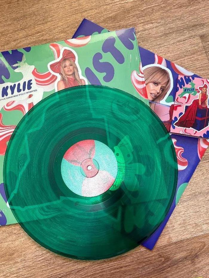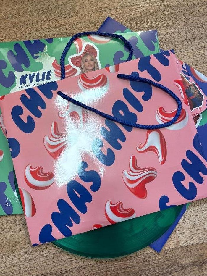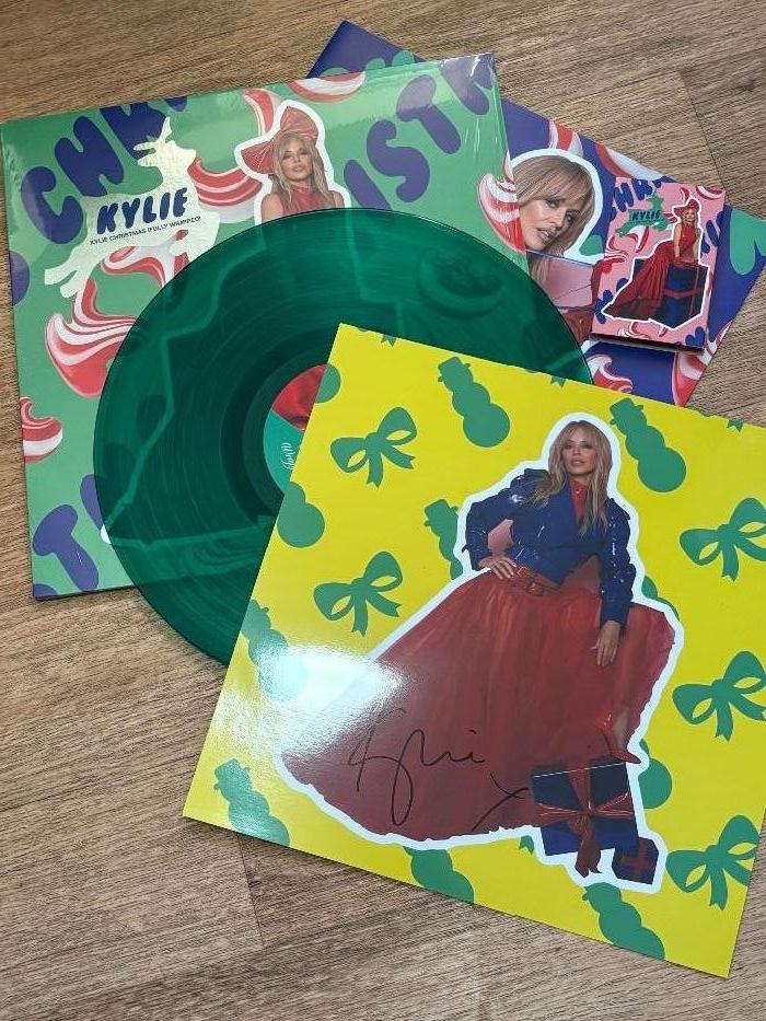 Kylie Minogue - A Kylie Christmas Fully Wrapped album bundle, including green vinyl and cassette plus a signed 12 x 12 print and a gift bag from the London pop up shop.