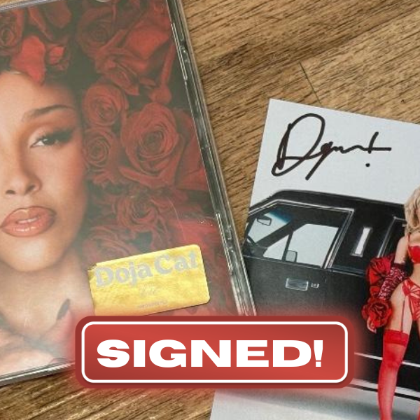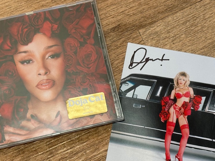 A CD copy of Doja Cat’s 2025 album Vie. With a signed insert/print