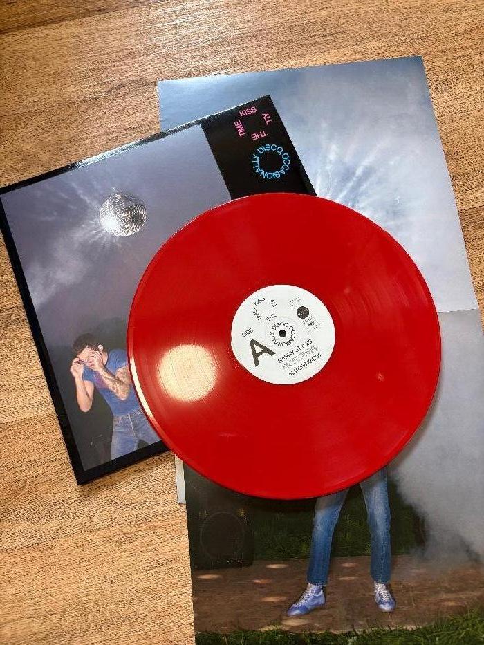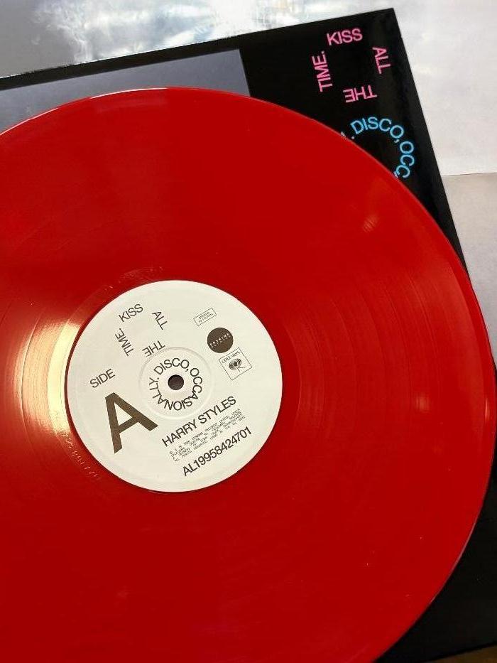 ‘Tomato’ red vinyl of brand new Harry Styles album, Kiss All the Time. Disco, Occasionally, that includes poster.