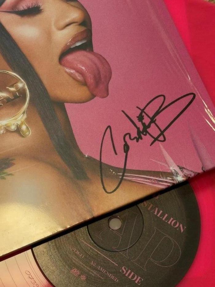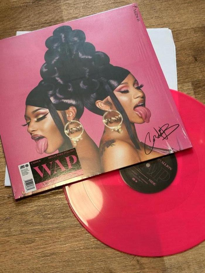 12” pink vinyl of WAP by Cardi B and Megan Thee Stallion, signed by Cardi B.