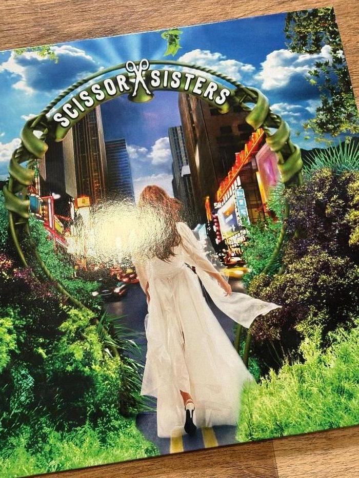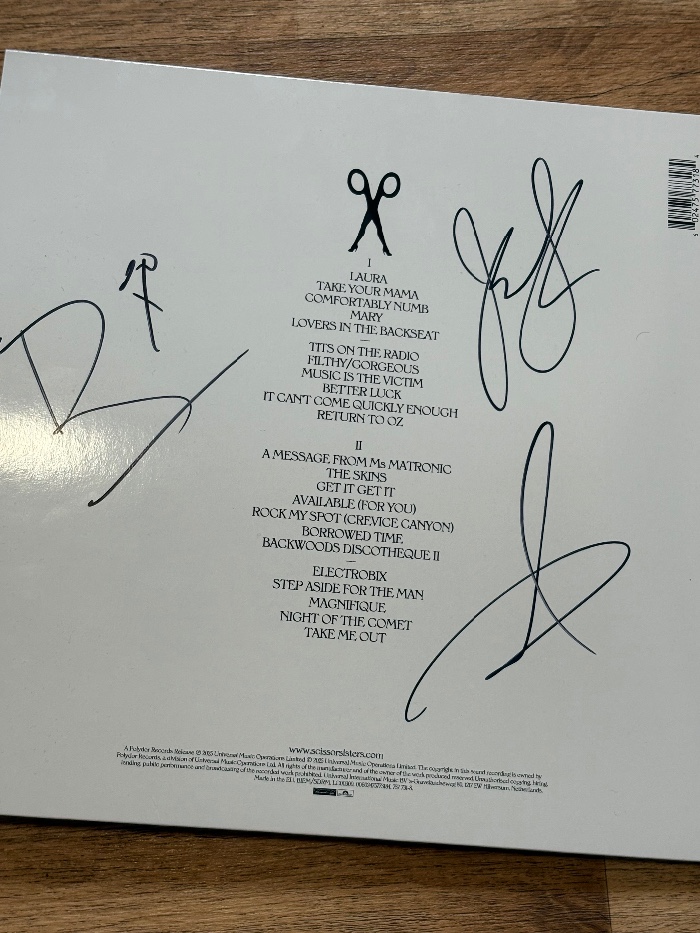 Double black vinyl reissue of Scissor Sisters debut album, back of LP signed by three members of the band, including Jake.