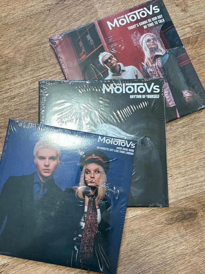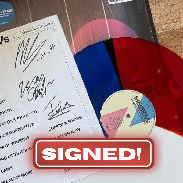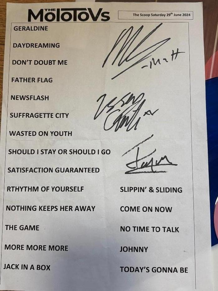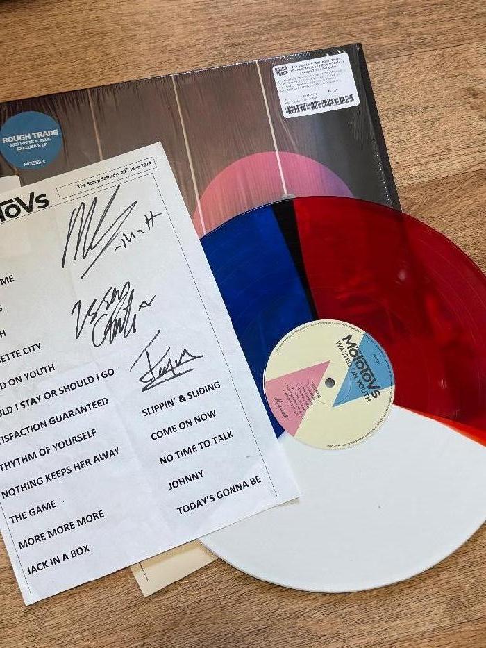 Red, white and blue vinyl of The Molotovs’ album, Wasted on Youth plus a gig set list signed by band