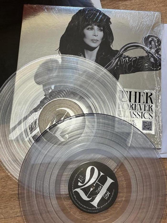 Double clear vinyl edition of Cher Forever greatest hits album.