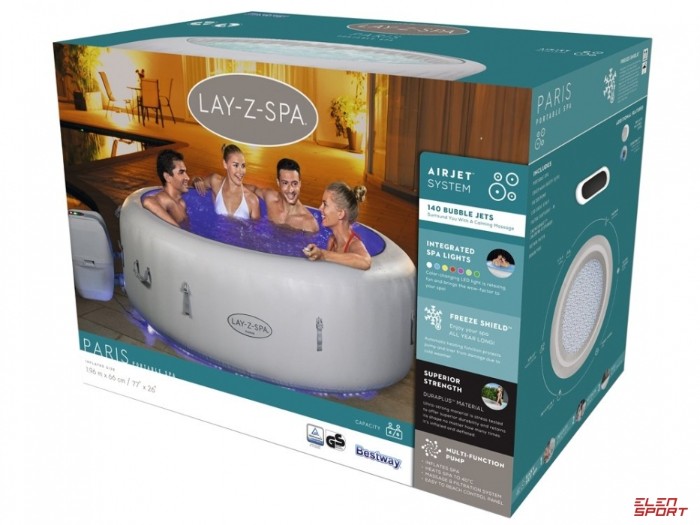 Lay-Z-Spa Paris AirJet Bestway inflatable Spa designed for 4-6 people will be perfect for blissful relaxation after a hard day, for feasting with friends, playing with children. The 196 x 66 cm jacuzzi will comfortably accommodate all those seeking rest, massage and relaxation. It is enough to place the pumped pool in a stable place, turn on the pumping system, pour water and enjoy the relaxation. In such a jacuzzi with a thousand bubbles, you can feel total relaxation. An additional advantage of this innovative spa is the LED lighting system that can be set according to your needs.