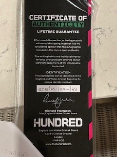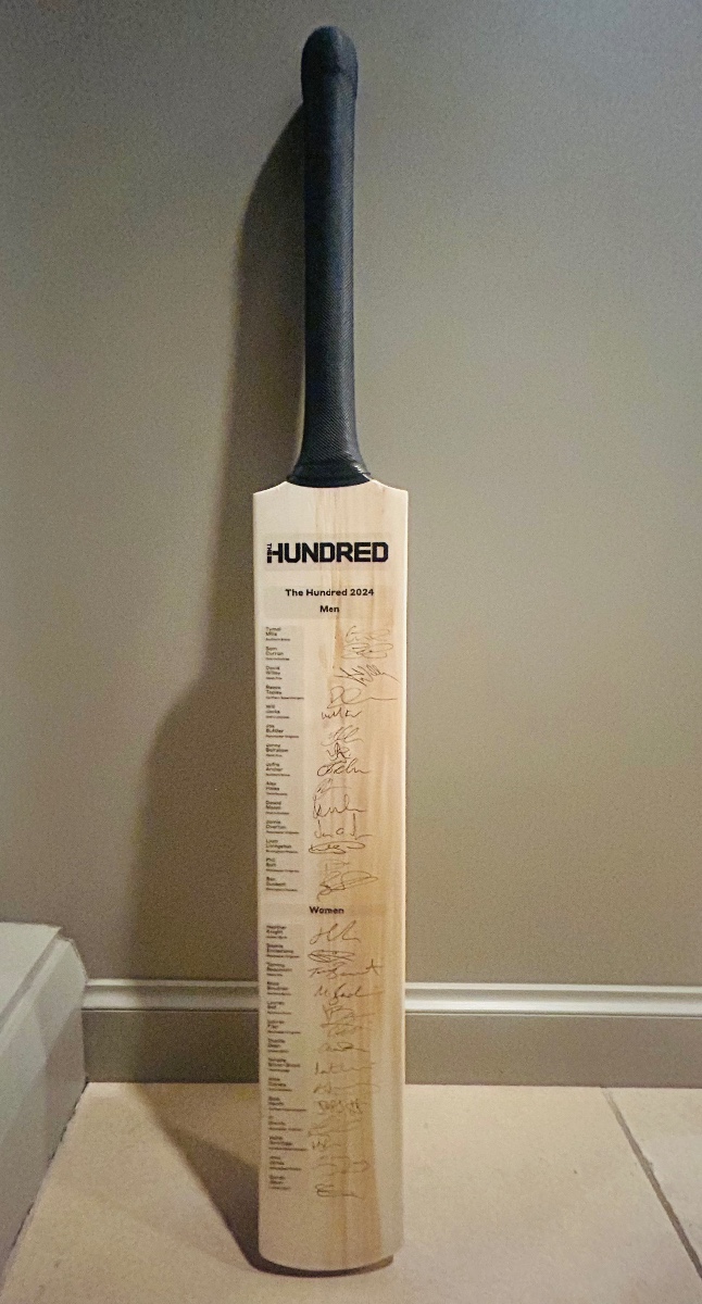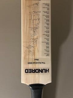 England Cricket Bat signed by all the Men and Women England Cricket Players involved in The Hundred 2024 (including Liam Livingston)