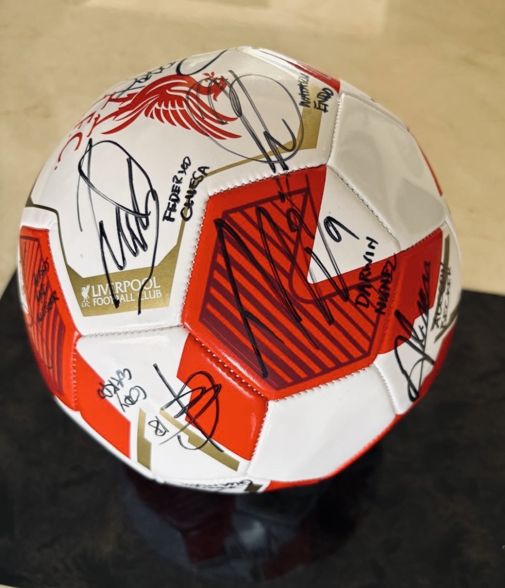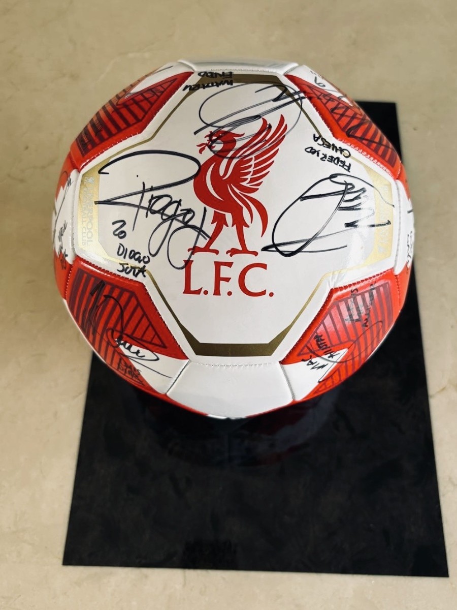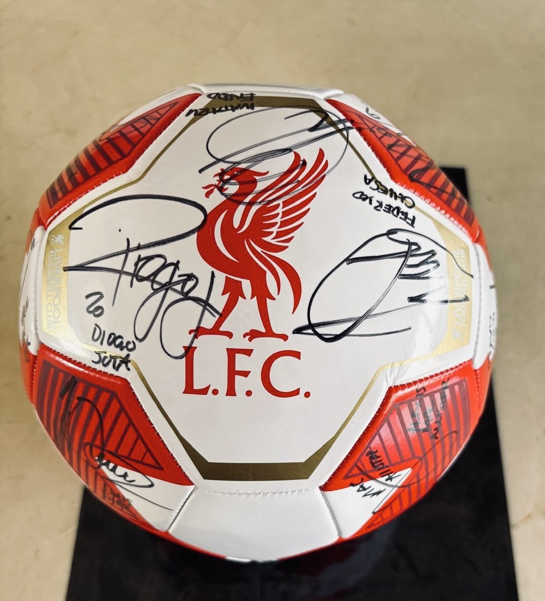 2024-25 Liverpool Team (including Diogo Jota) signed football. To be presented in a premium acrylic display case with a clear ball holder. Photo to follow