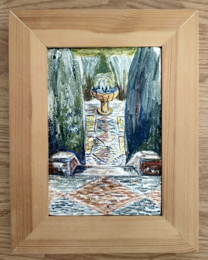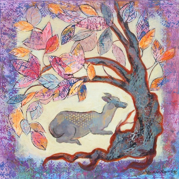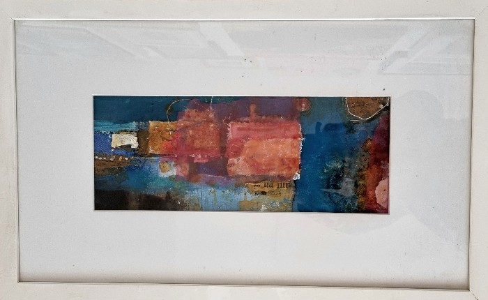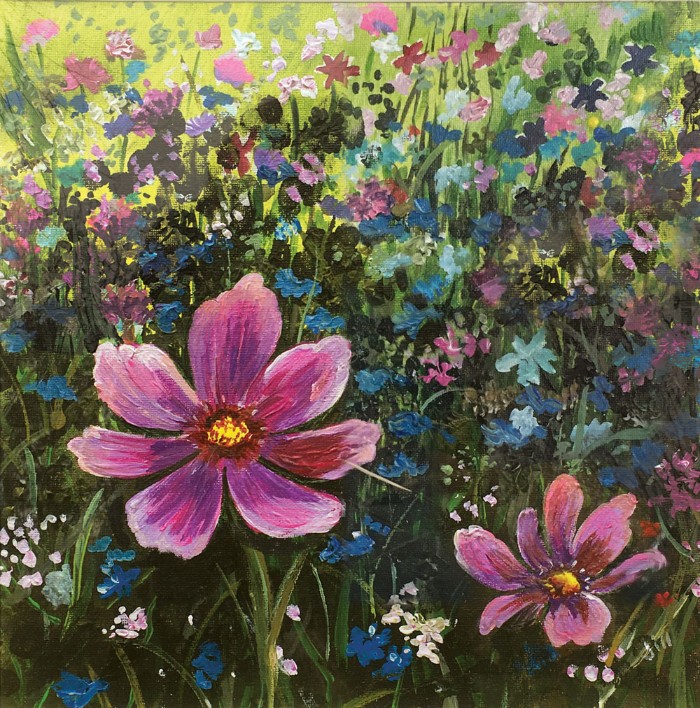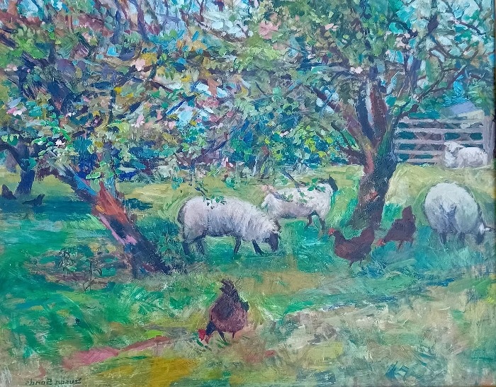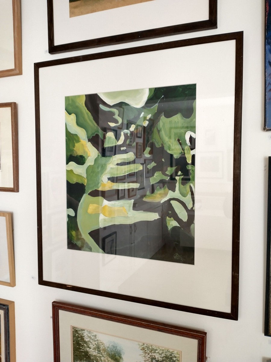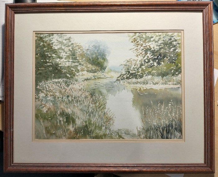 Oil on Canvas 30cm x 25cm - framed. 37cm x 32 cm My primary source is found in the intoxication of informal gardens and of light falling through foliage or on water. The paintings are the physical metaphors for these experiences. I paint mainly in oil paint or watercolour and occasionally acrylic. The different properties of each medium lend themselves to different approaches extending the vocabulary I can draw upon. All the paintings should be immersive work and without a particular focal point, much as we scan in real life. I use mixed colours, rhythm, shallow depths and use a ‘dry on dry’ technique that encourages a 'calligraphic' brushwork.