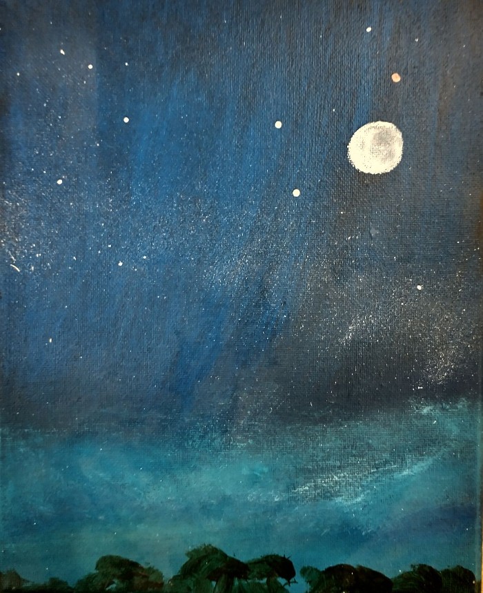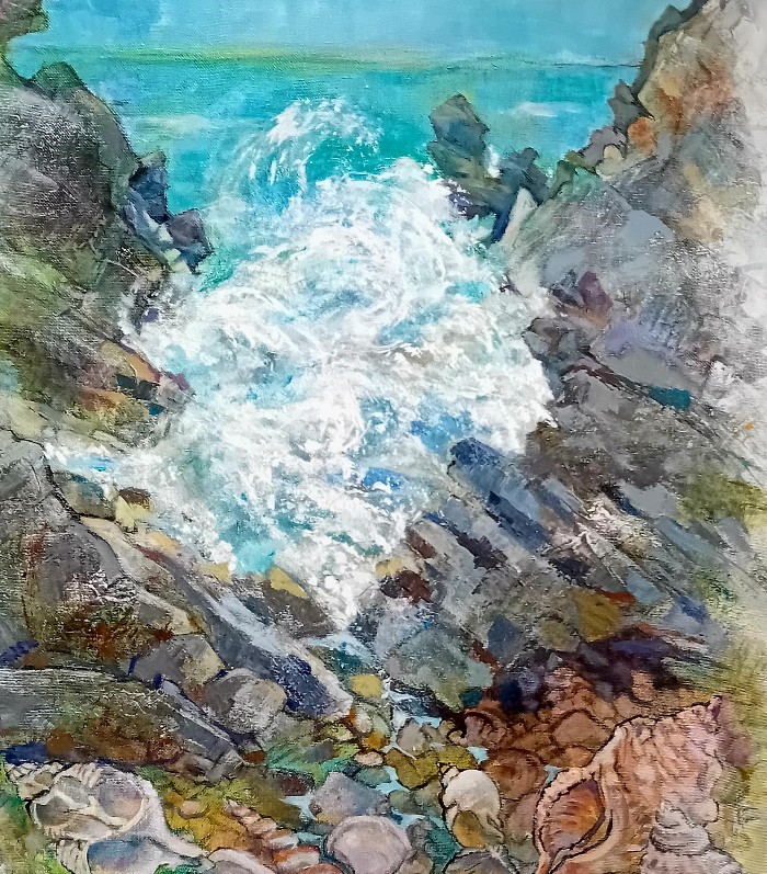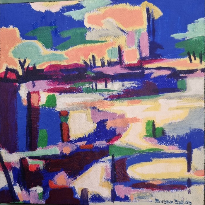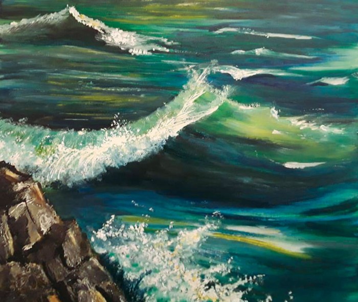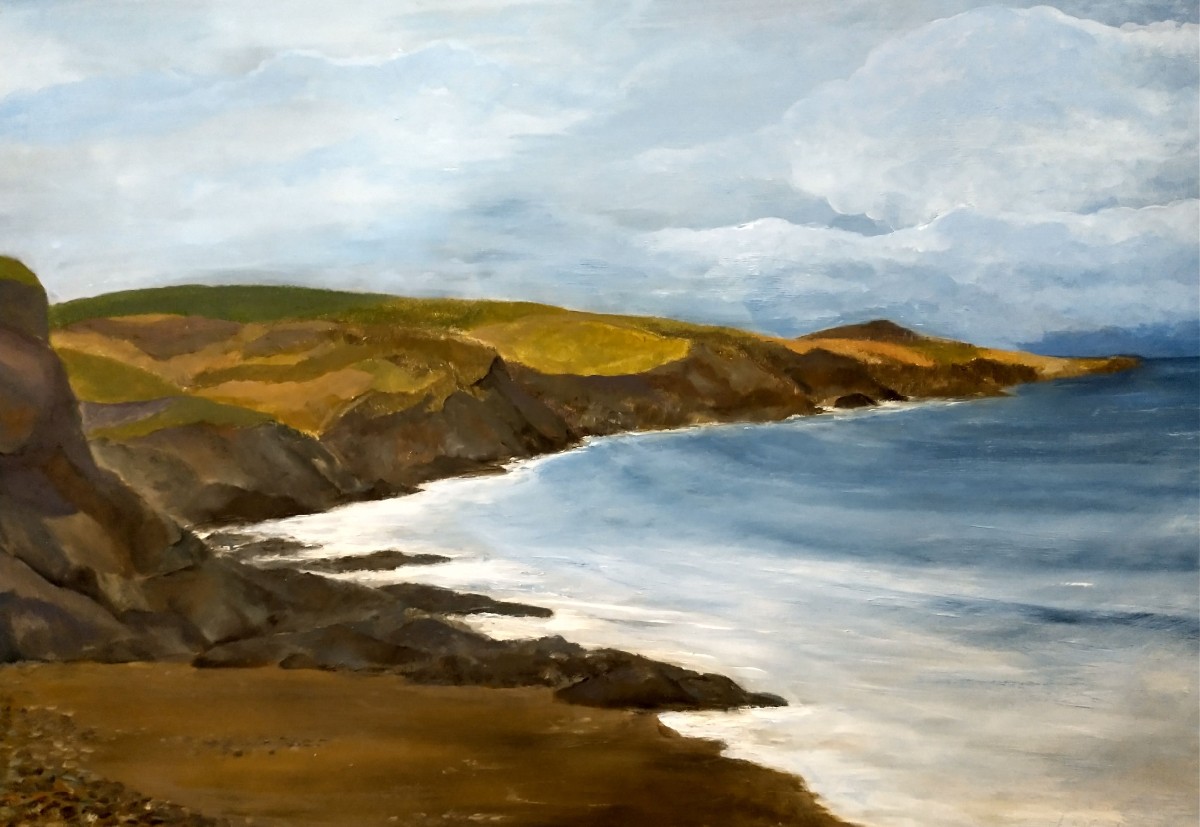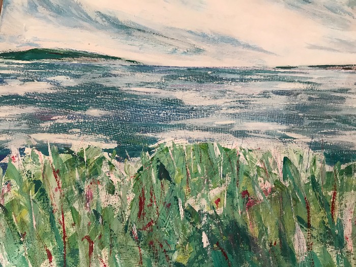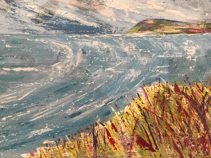 Acrylics 50 x 50 Inspired by the large skies and ever-changing colour of the vibrant seasons in the very wildest of West Wales, Jill works with light, moonlight and all the shades of sun and seawater in her dynamic oil paintings and acrylic works.