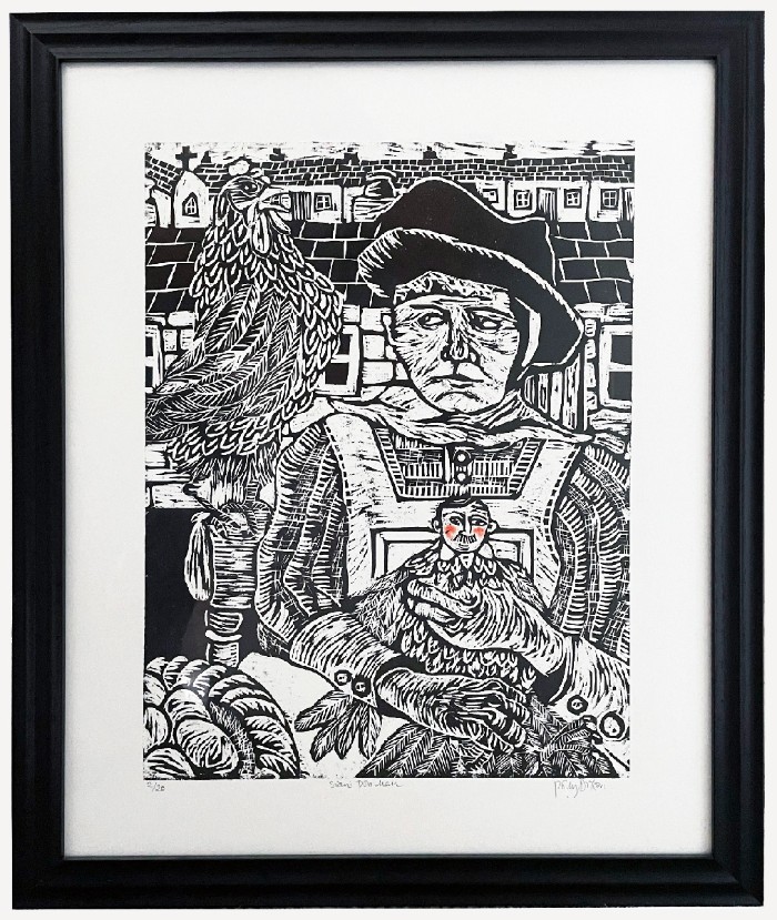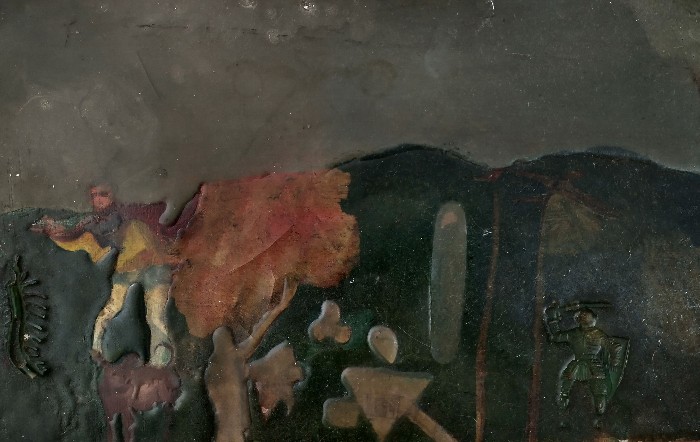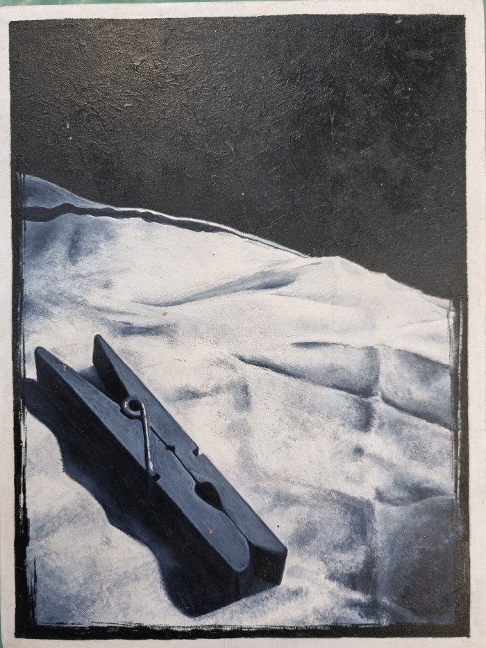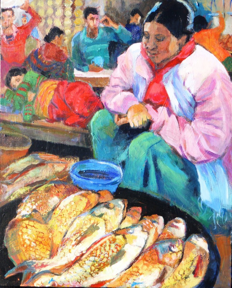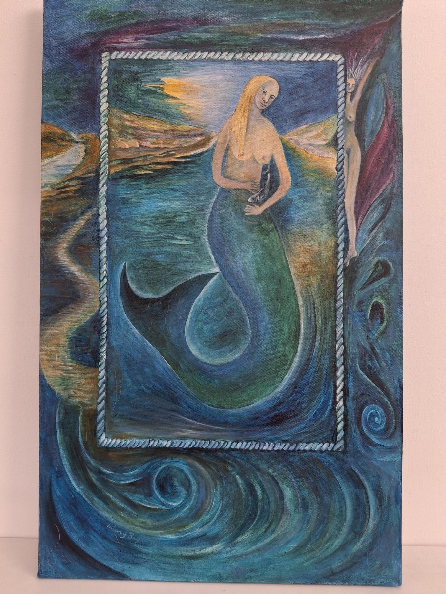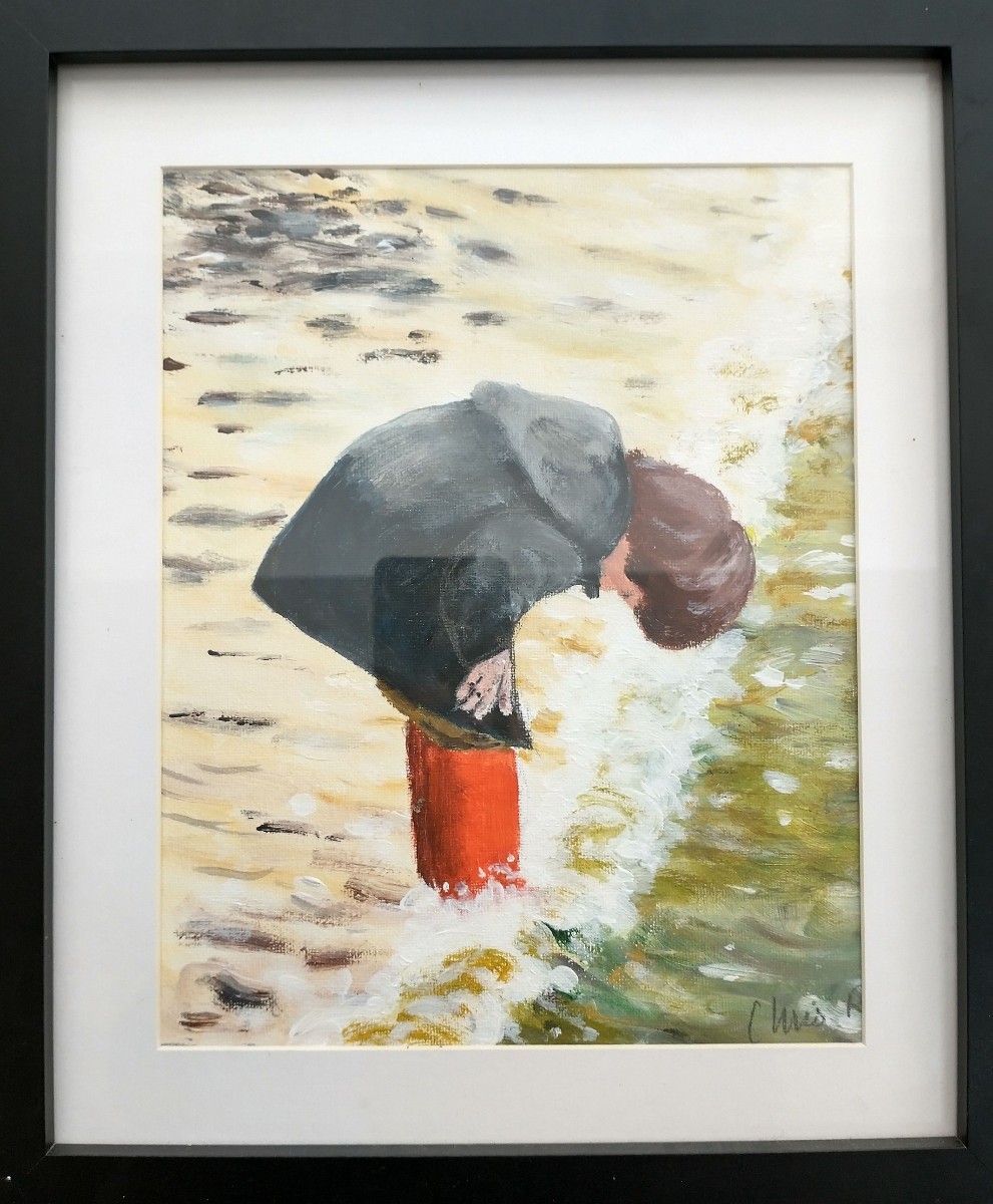 oil on canvas 20x20cm Jacqueline is a painter from Porth near Tonypandy Rhonda Cynon Taf. Recently she exhibited with the Mall Galleries in London but is fairly well known in Wales as part of the Welsh Group and a member of the Stuckist Movement. Her work is exhibited internationally from America to Tehran. She describes her work as Figurative/ expressive but it is worth mentioning the Stuckist manifesto at this point where there is a quest for authenticity with uncensored expression. Stuckists promote the medium of self-discovery fully immersed in the process of action, emotion, thought and vision. And a holistic approach where there is a meeting of the conscious and unconscious , thought and emotion, spiritual and material, Private and public.