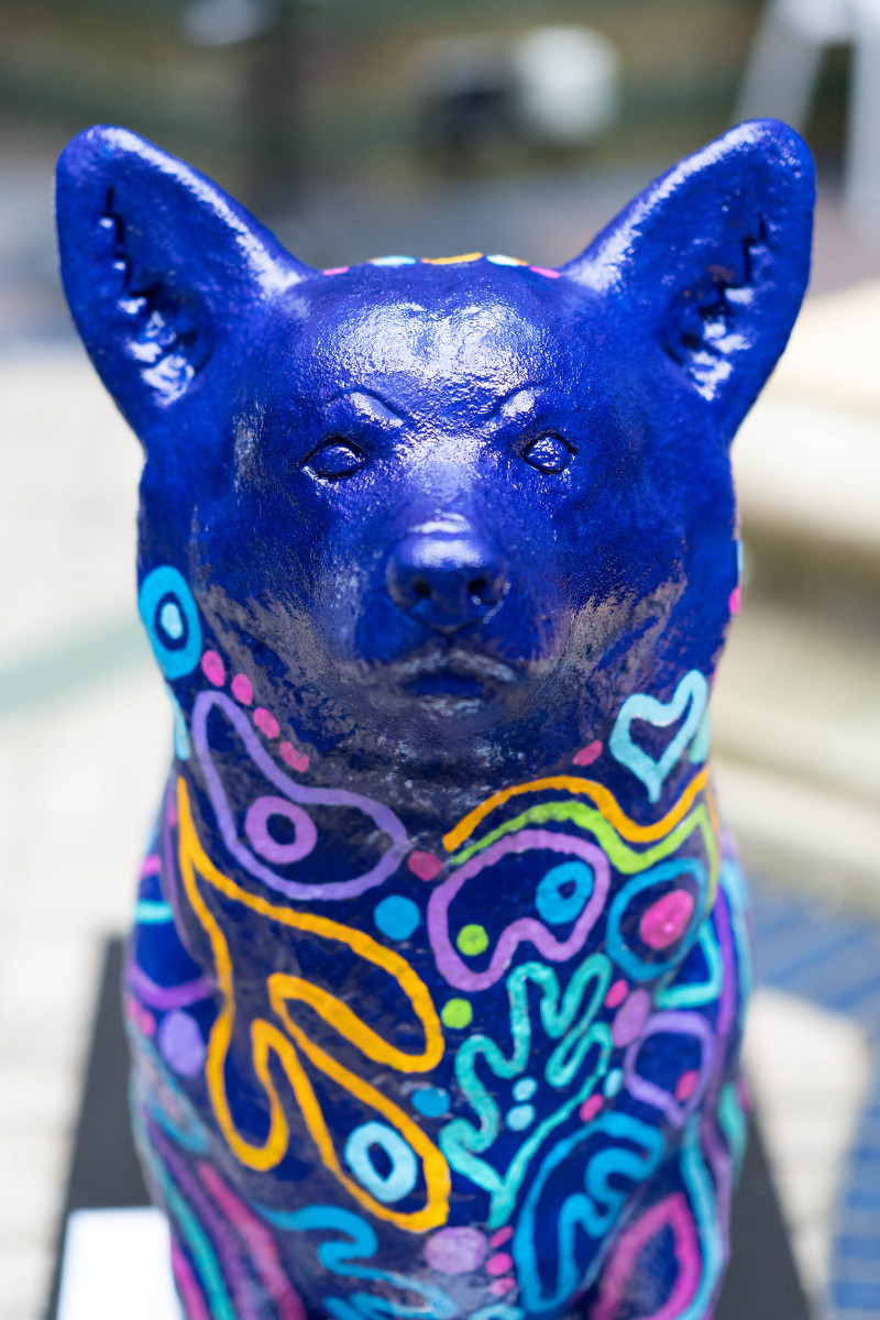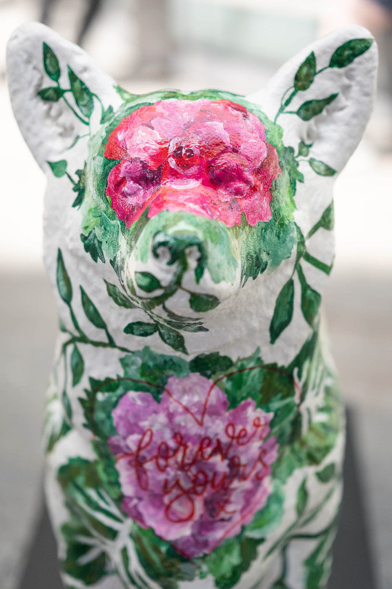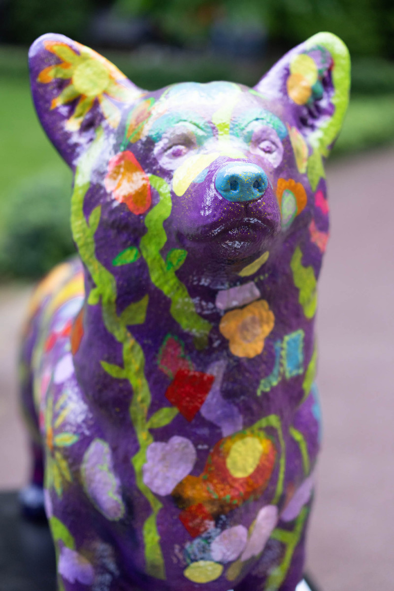 Inspiration & Process: Given that this Corgi was going to be placed on Cathedral Piazza surrounded by traditional buildings and in such a traditional area as Victoria during the trail, Miya chose to inspire her design based on a traditional Corgi.
