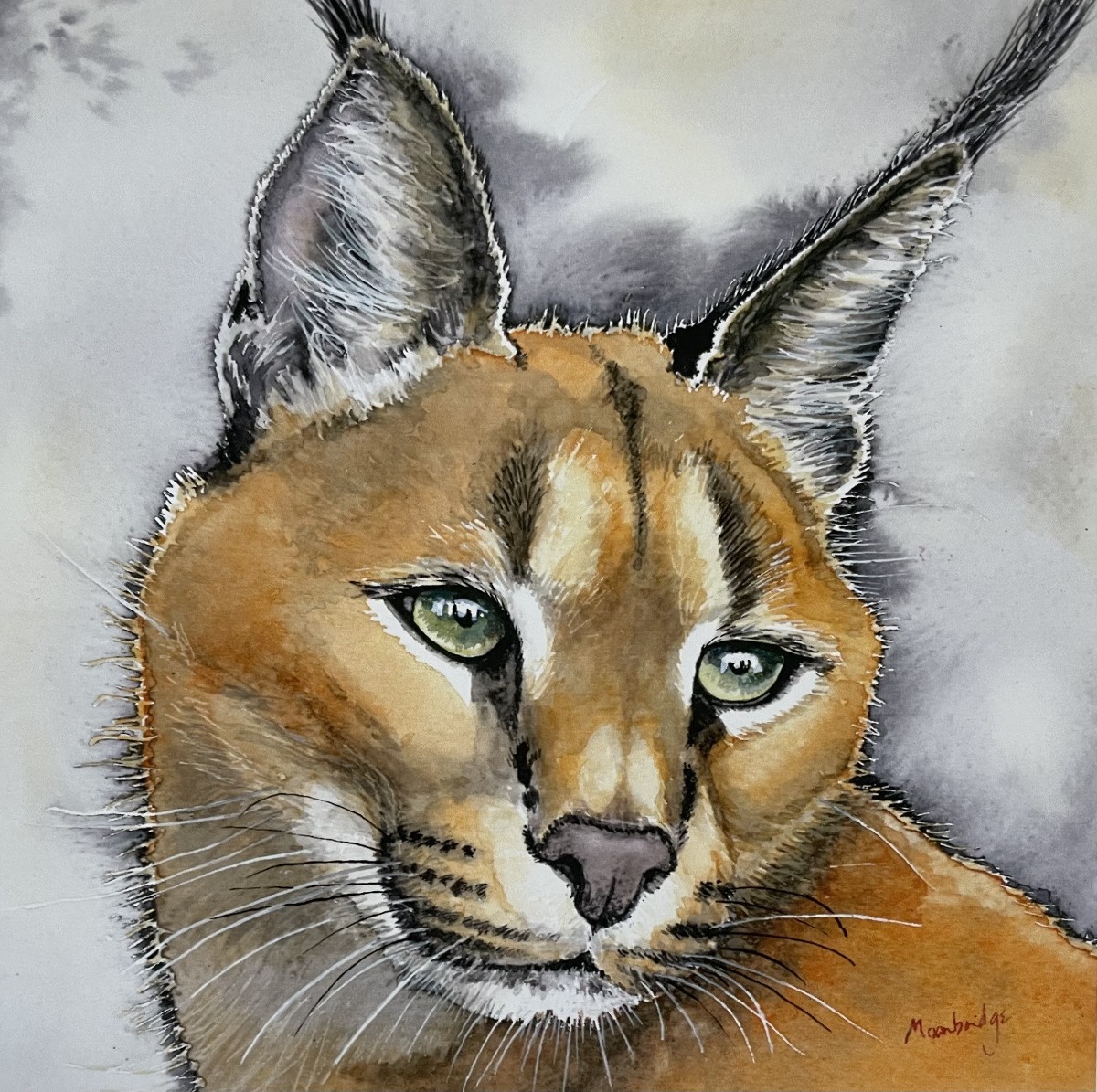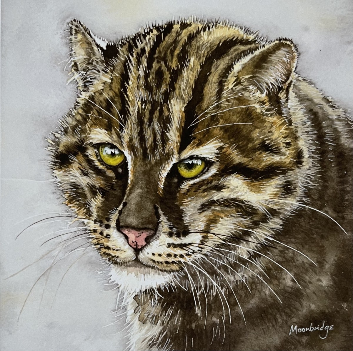 I’ve painted all my life, and have been lucky enough to travel to see animals in the wild. I particularly enjoy capturing the characters of animals and people. I’ve exhibited at Christie’s and the Mall Galleries. Ive been a member of The Marwell International Wildlife Art Society, a Full Member of the Society of Feline Artists, and a BT Storyteller, (Artist), for the London 2012 Olympic and Paralympic Games. As a past Regional Organiser for The Wildlife Art Society, I organised exhibitions in aid of various wildlife charities.