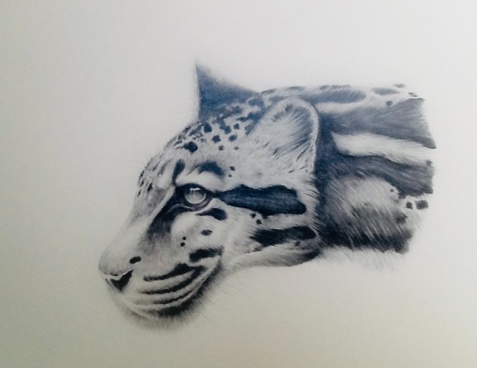 Obsidian is my portrait of a clouded leopard, drawn in honour of this elusive and endangered big cat.