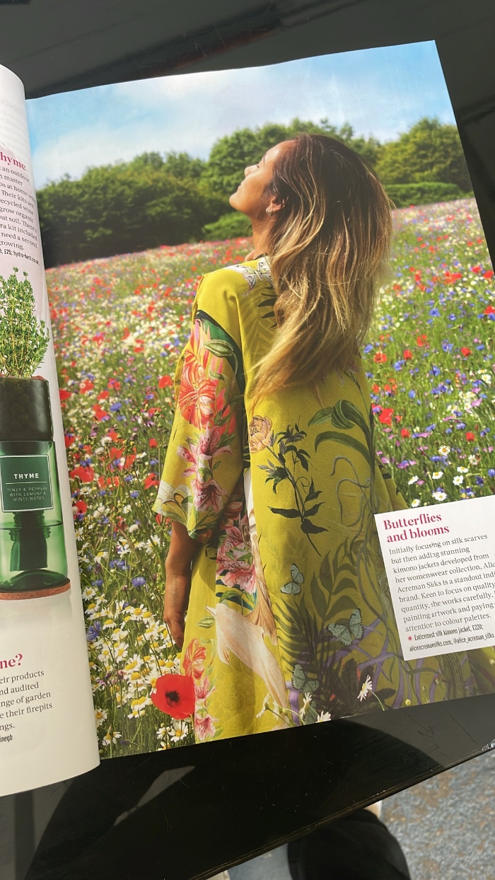 Luxury hand crafted accessories, printed with unique watercolour painted artwork by artist, Alice Acreman