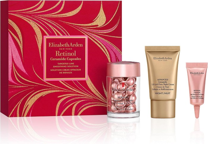 This anti-aging three-piece skincare gift set includes 30-piece Retinol Ceramide Capsules Line Erasing Night Serum, Retinol Ceramide Line Erasing Eye Cream and Advanced Ceramide Lift and Firm Night Cream.