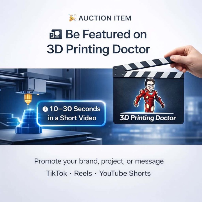 The winner will receive 10–30 seconds of screen time in one of my upcoming short videos (TikTok, Instagram Reels, or YouTube Shorts). Use this time to promote your brand, project, product, or message to an audience interested in 3D printing and technology.