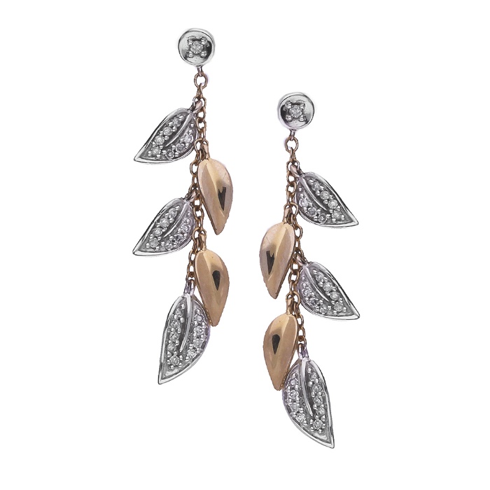 Beautiful diamond drop-leaf earrings in 9ct yellow and white gold from Northampton jeweller, Michael Jones.