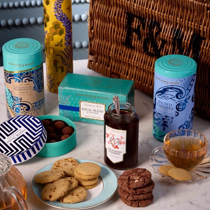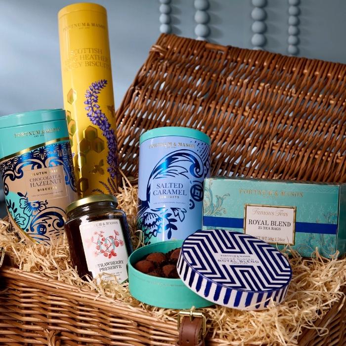 Packed with a selection of Fortnum's favourites — including Royal Blend tea, a trio of buttery biscuits, decadent chocolate truffles and F&M's famous Strawberry Preserve.