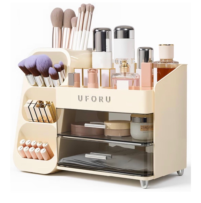Cosmetics Storage Box with Drawers & Brush Holder
