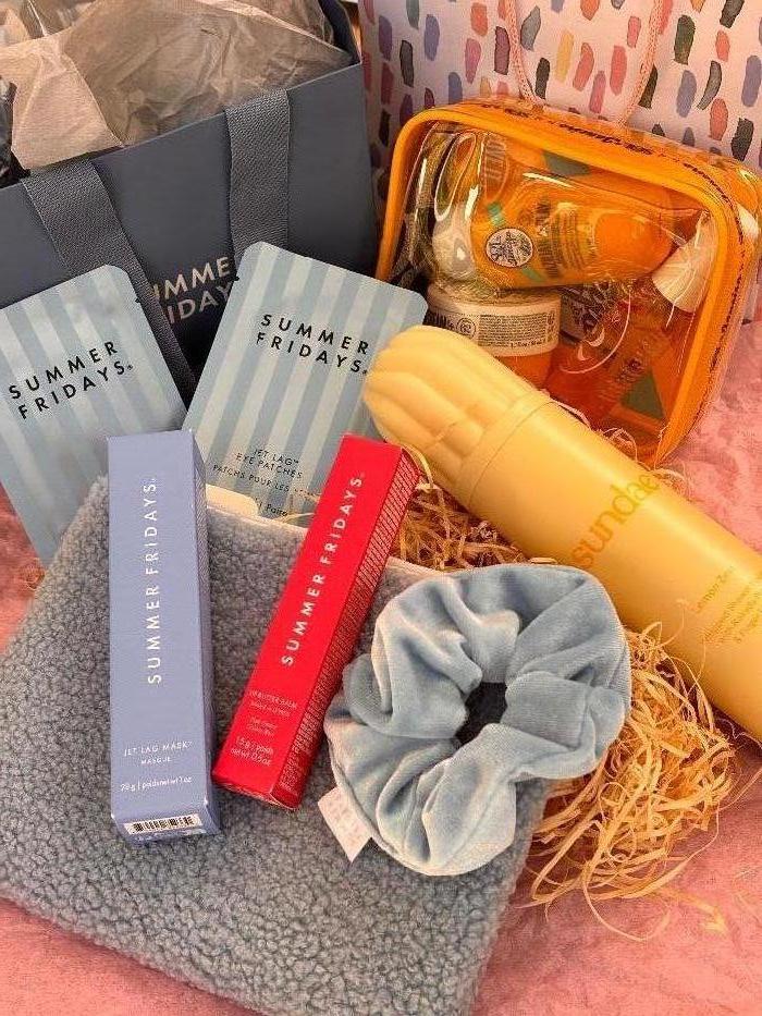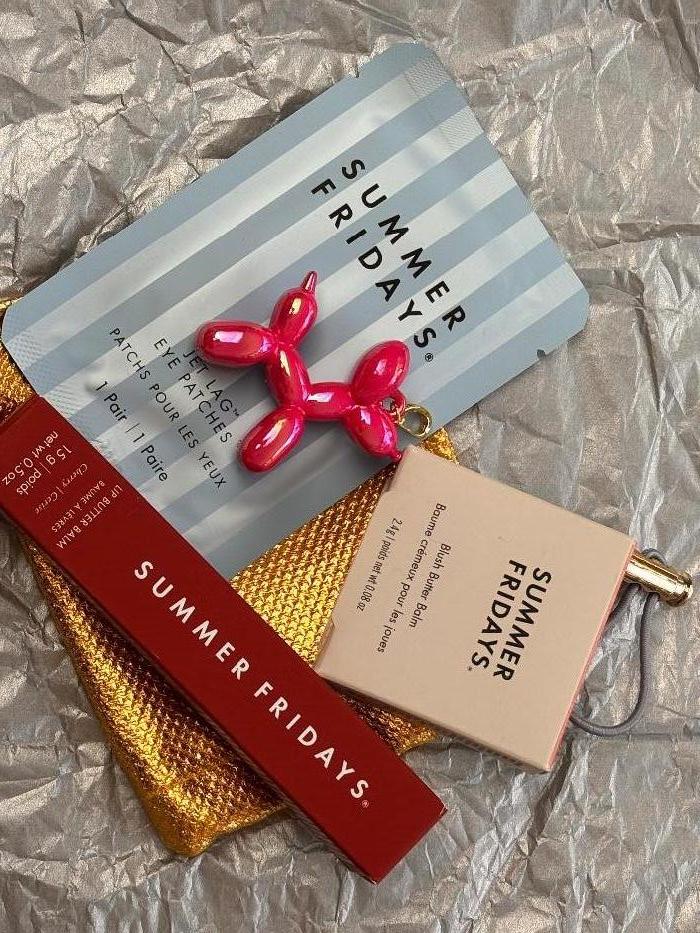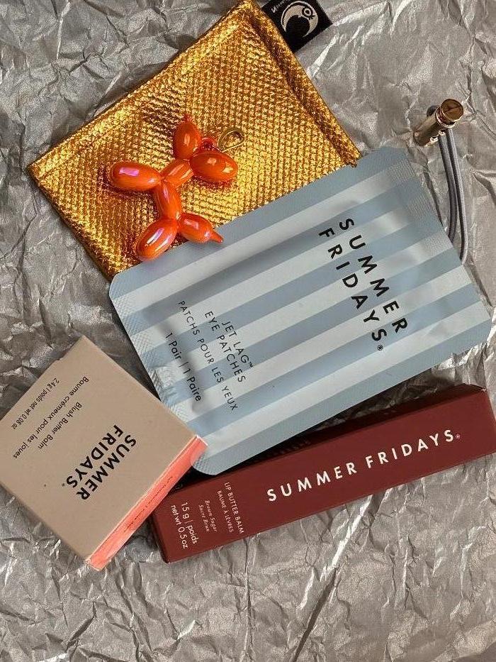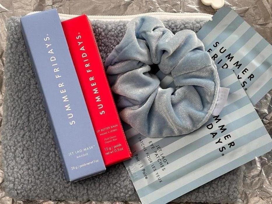 Summer Fridays Jet Lag Mask, Lip Butter Balm, 2x Jet Lag Eye Patches, Scrunchie & Make-Up Pouch