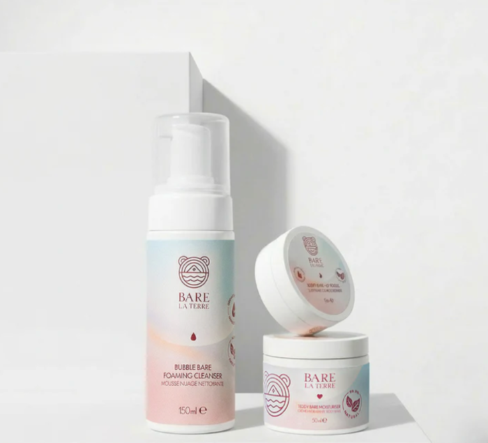 A gift set of 3x Bare la Terre products (RRP £55 for bundle) plus additional branded merchandise