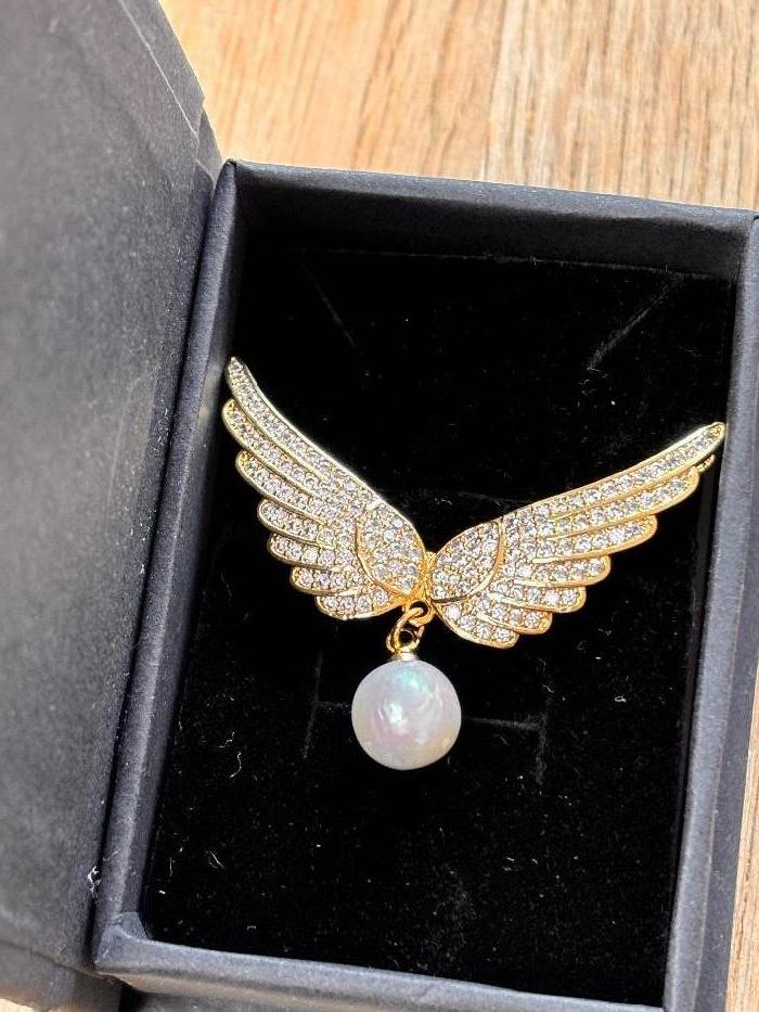 Ninemoo Gold Angel Wings & Pearl Brooch
