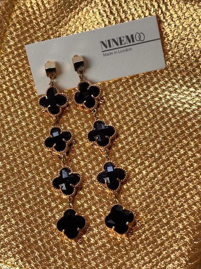 Ninemoo Gold & Black Clover Drop Earrings