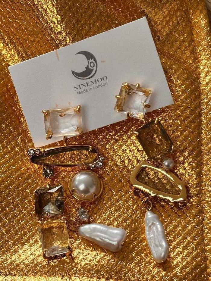 Ninemoo Crystal & Pearl Drop Earrings