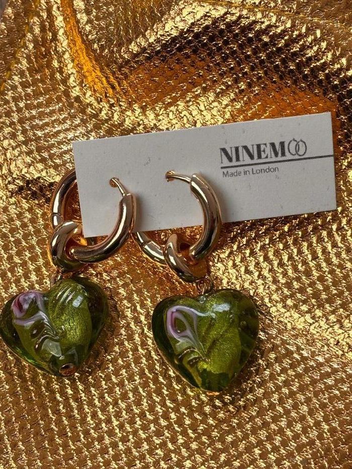 Ninemoo Gold Hoop & Green Heart Earrings