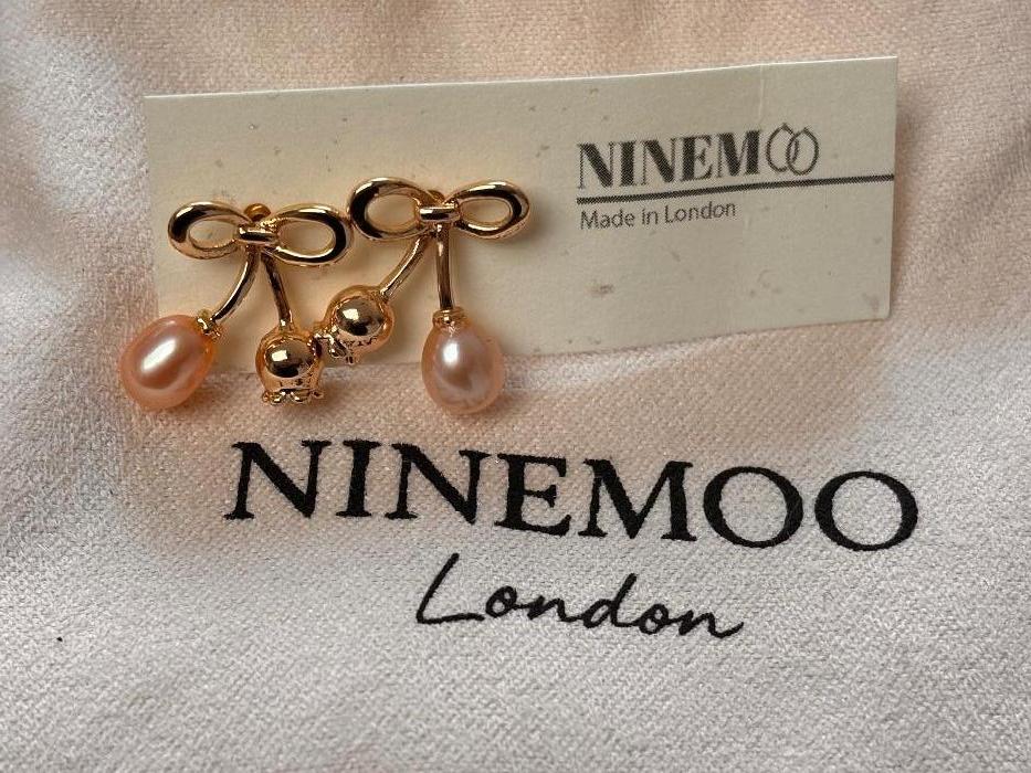 Ninemoo Gold Bow & Pearl Cherry Earrings