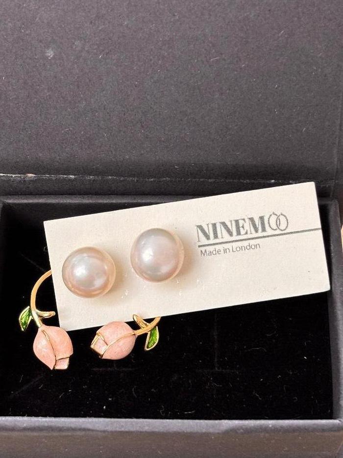 Ninemoo Pearl Stud Floral Hoop Earrings