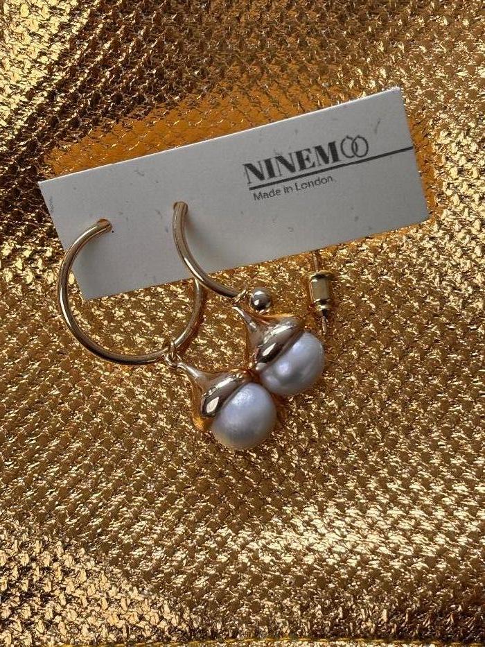 Ninemoo Gold Hoop & Pearl Earrings
