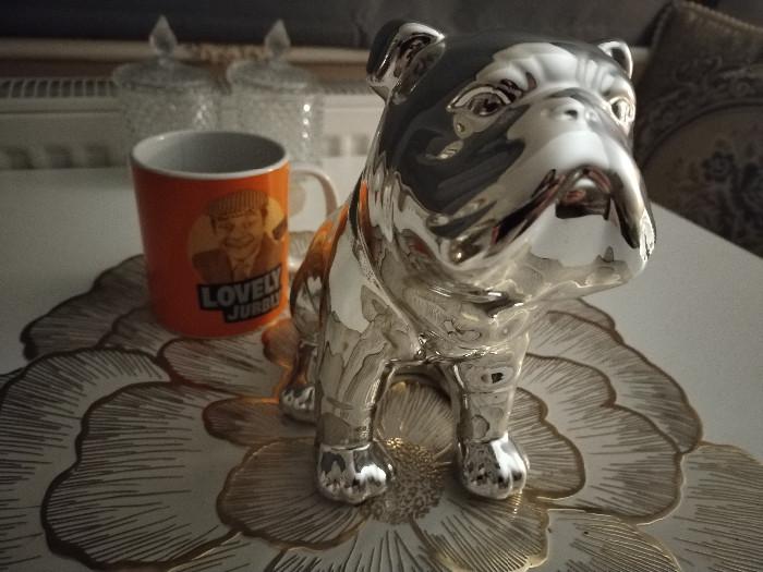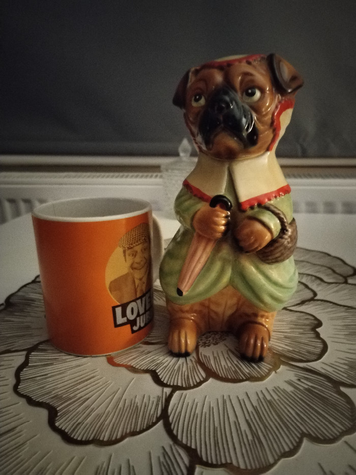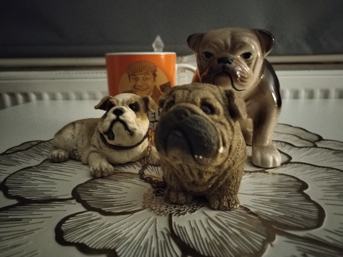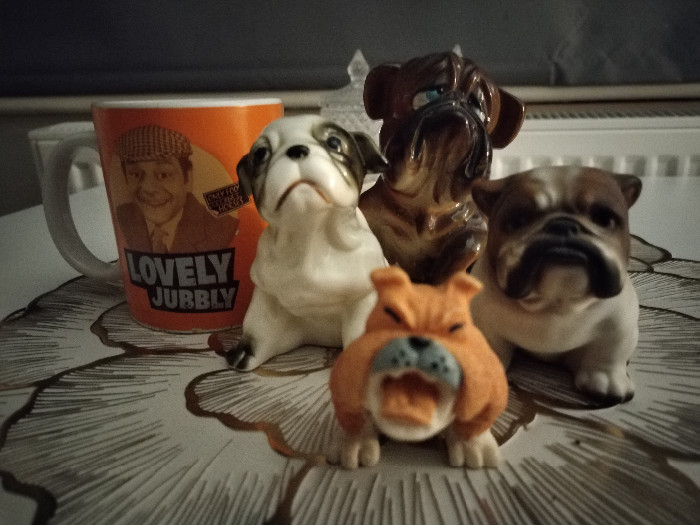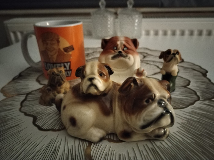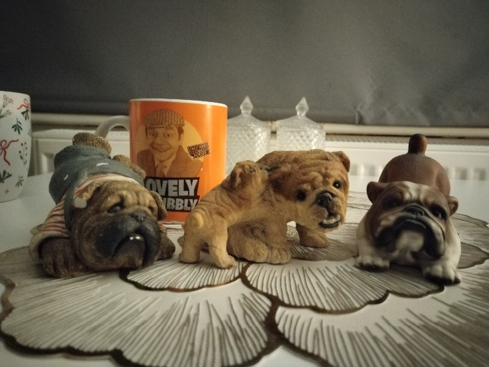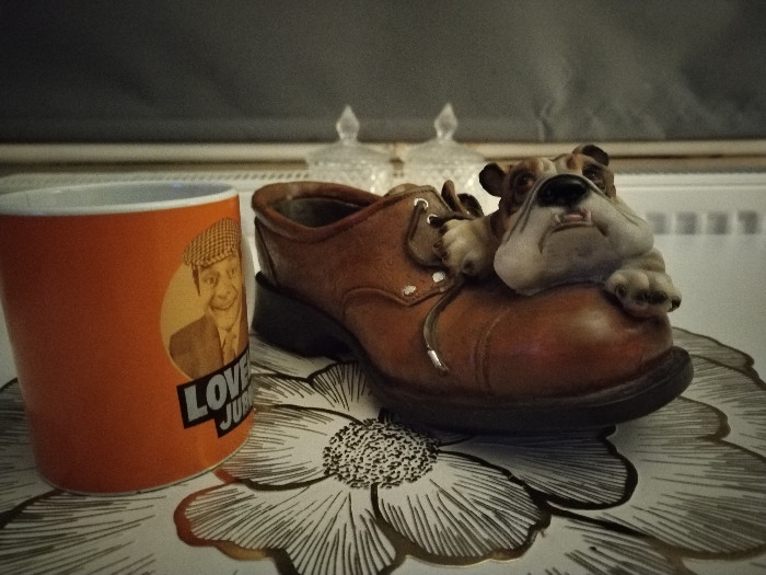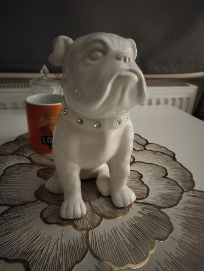 This delightful Bulldog and Shoe ornament is up for grabs. Cup for scale. £3 will be added for postage.