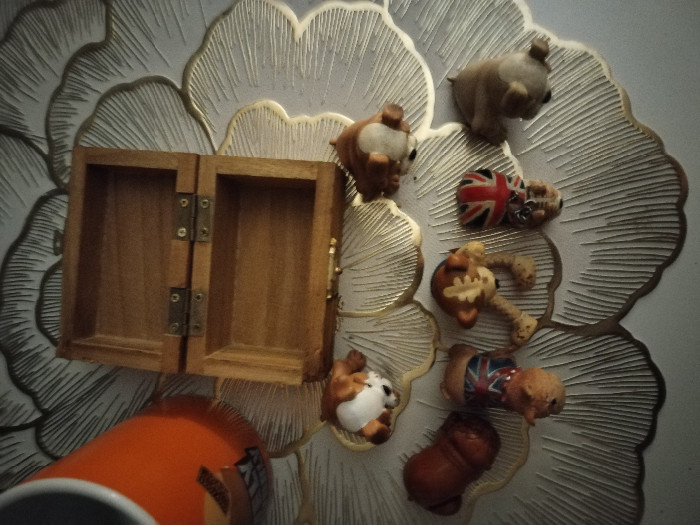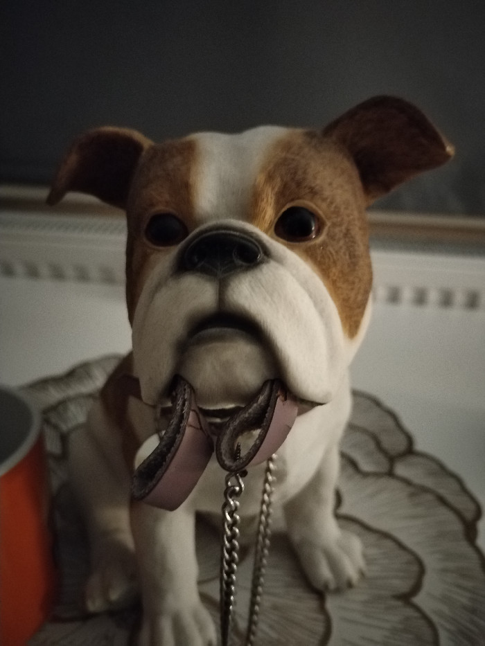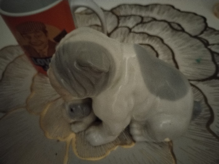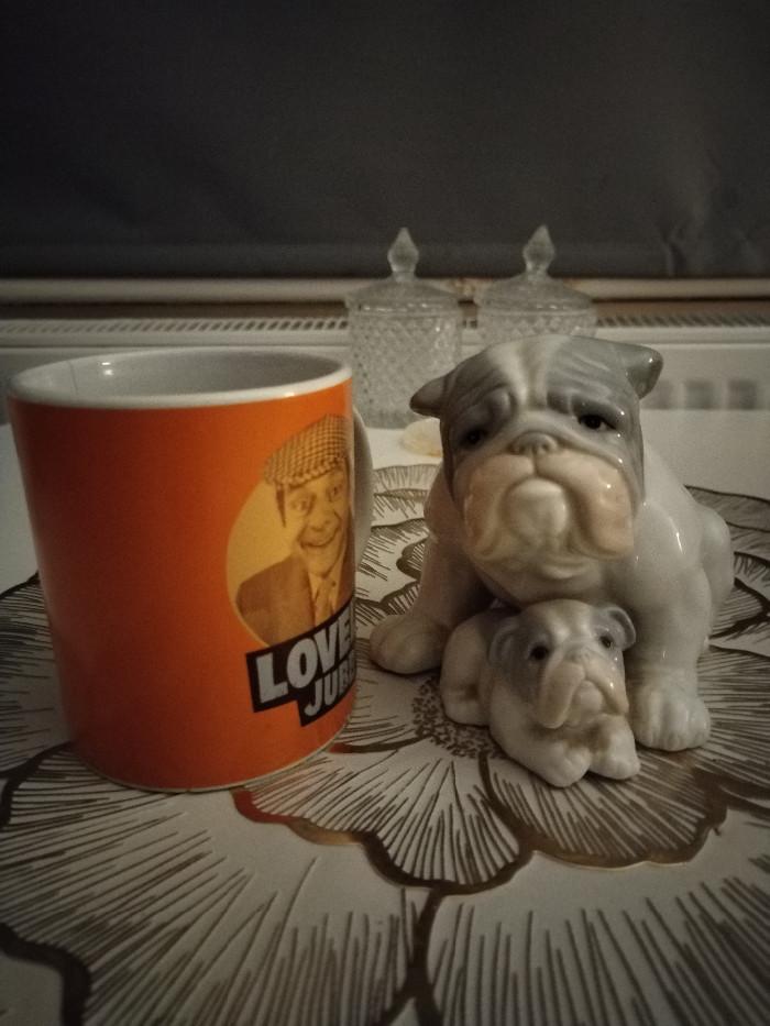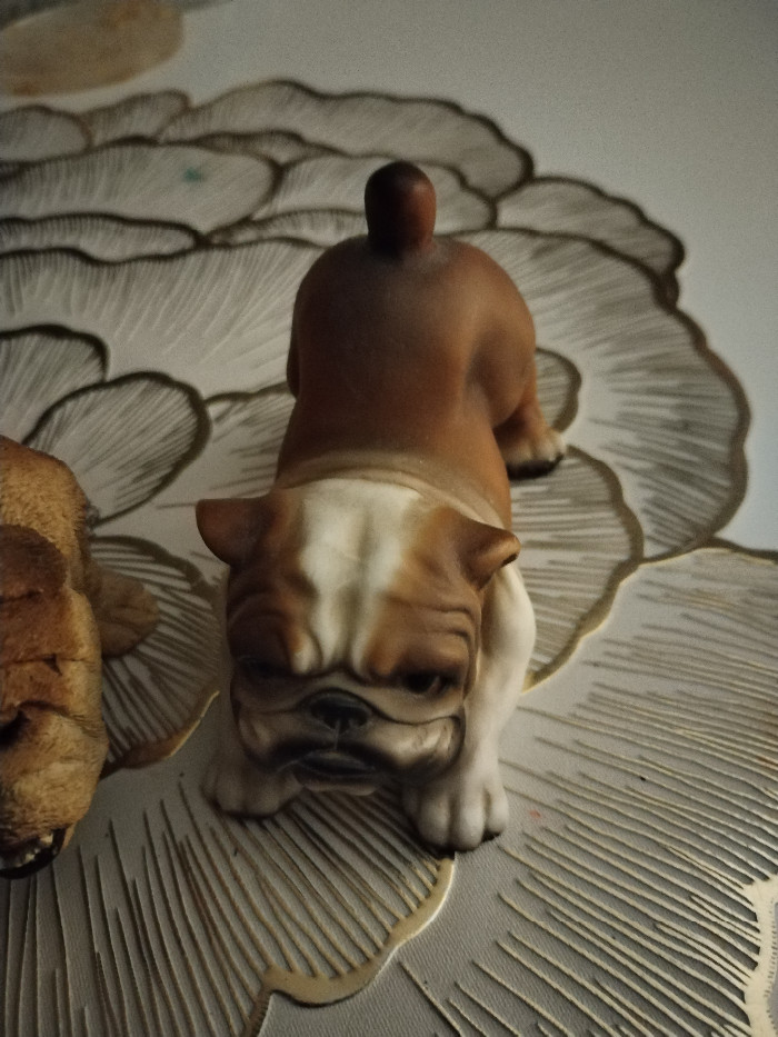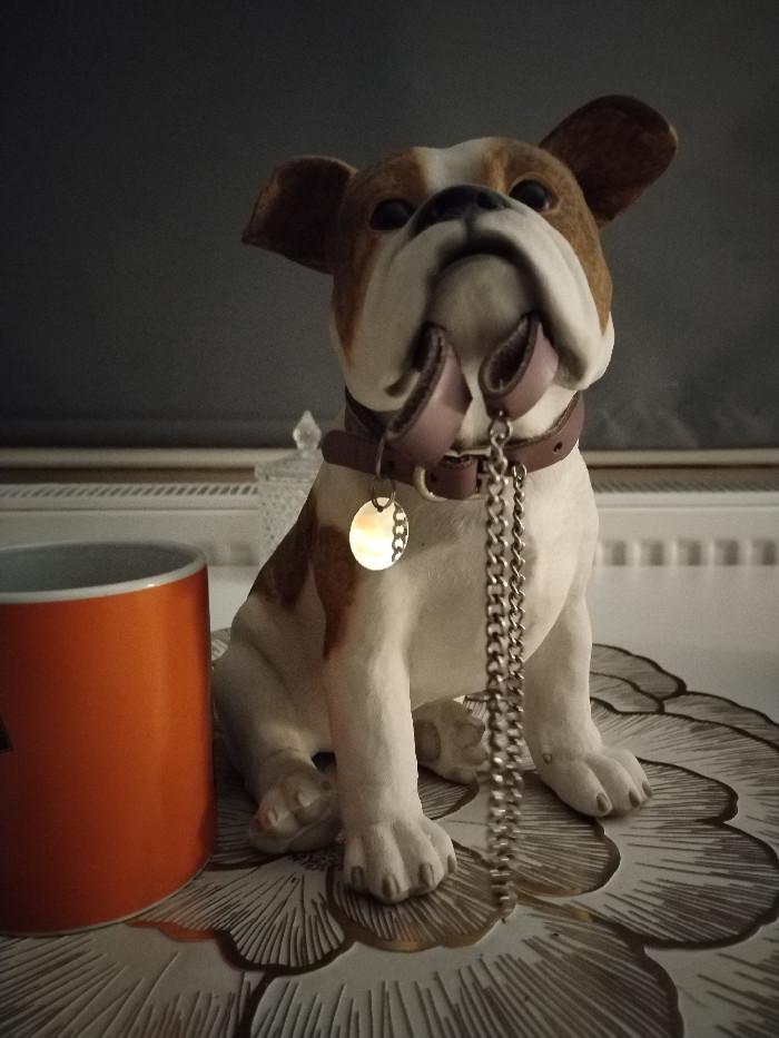 This delightful Bulldog and Shoe ornament is up for grabs. Cup for scale. £3 will be added for postage.