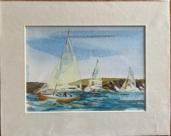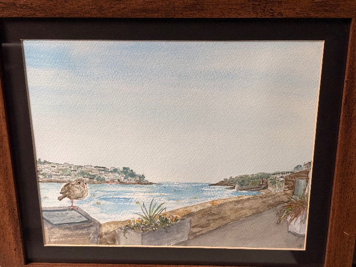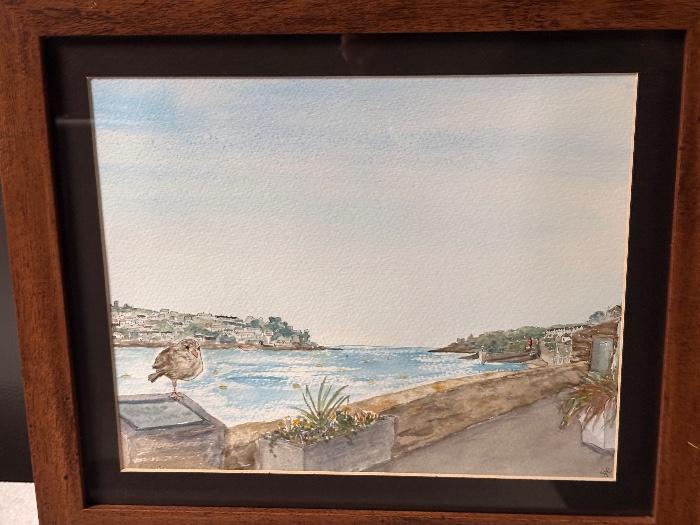 A beautiful watercolour and ink painting of The Harbour Entrance from Town Quay by local artist Sue Eng.