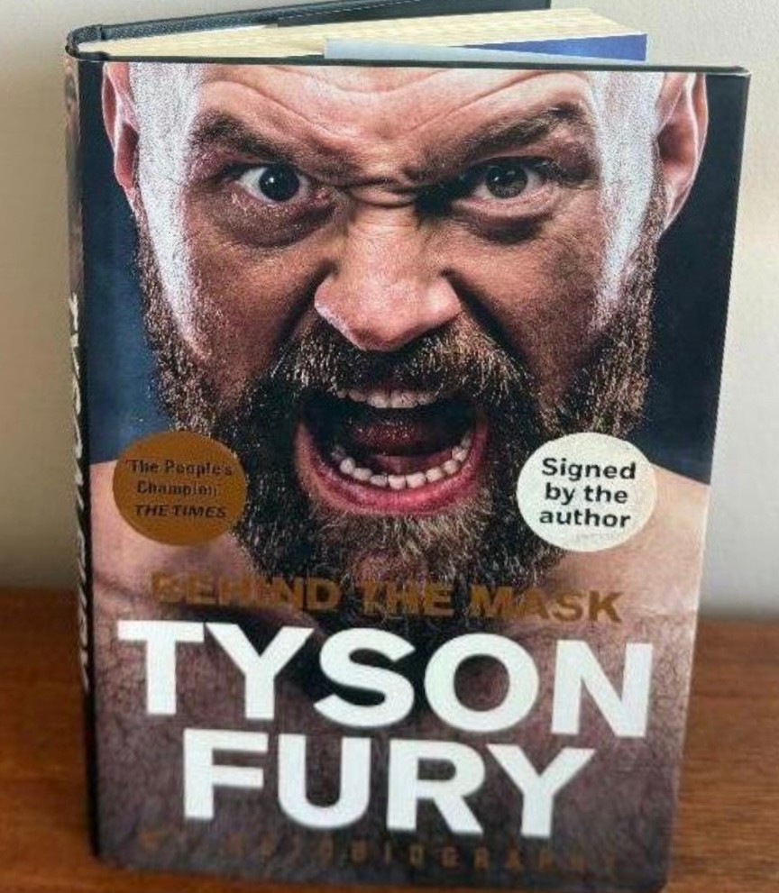 A signed autobiography by Boxing World Champion, Tyson Fury, Behind the Mask. The very personal story of his highs and lows, and his extraordinary comeback from drink, depression and loss of form. This is a hardback, unread, in near perfect condition. It has been donated by an independent bookseller. RRP £20.