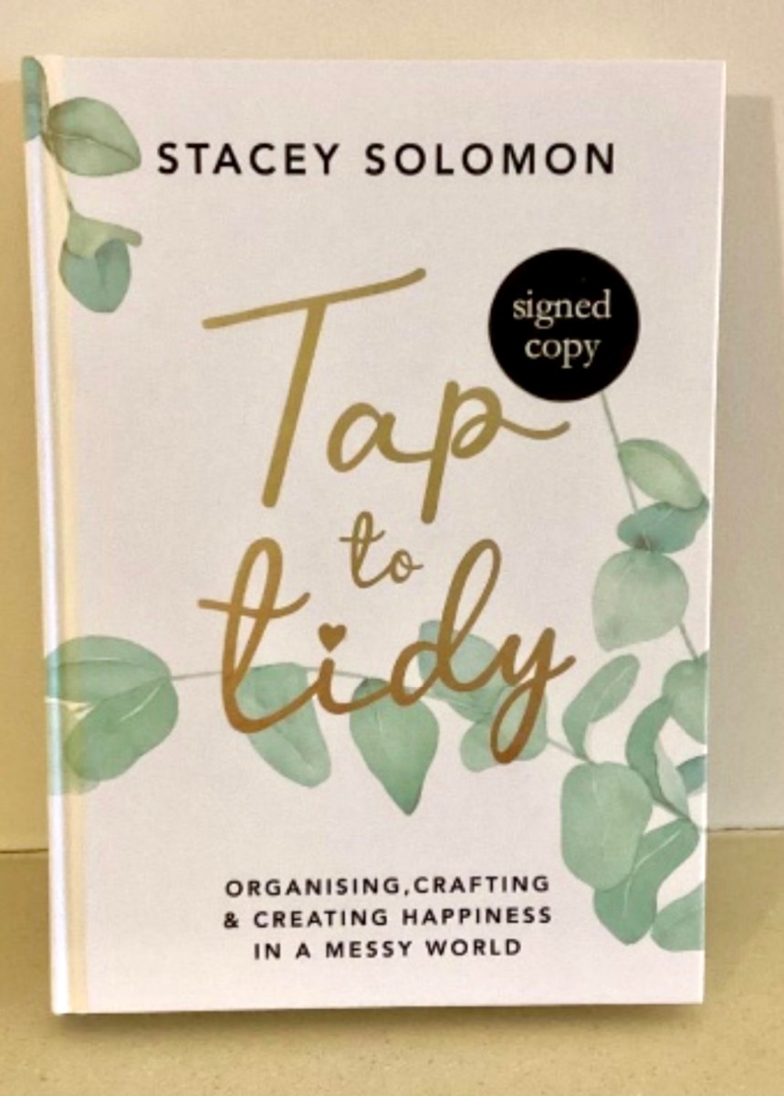 A signed copy of Tap to Tidy by Stacey Solomon, television personality and singer, and now the queen of organising, crafting and creating happiness in a messy world! A hardback, unread, in near perfect condition. It has been donated by an independent bookseller.