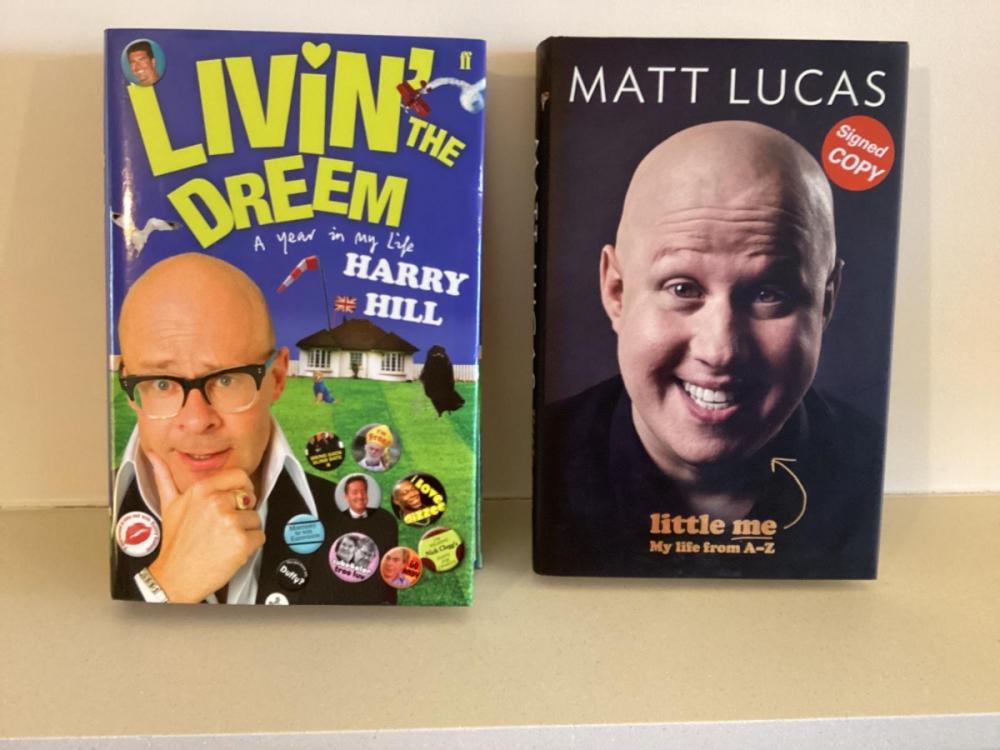 A bundle of two signed memoirs from comedians, Matt Lucas and Harry Hill. Harry gives insight into a year of his life, and Matt details an A-Z of his life and work. Both hardback, unread, in near perfect condition, donated by an independent bookseller. RRP £20 and £18.99.