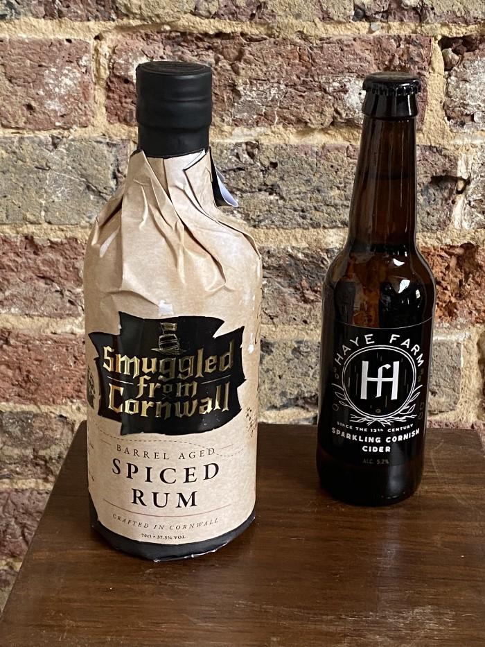 A case of sparkling Cornish cider and a bottle of rum from Haye Farm, probably the oldest cider maker in the world, cider having been produced on the farm since the 13th Century. This small family run business is located on the coast between Polruan & Fowey.