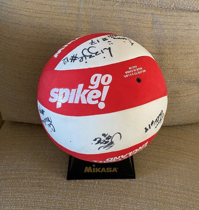 Go Spike Soft Touch Volleyball signed by the GB Women's London 2012 Olympic team- signatures include Lizzy, Janine Sandell, Maria B, Caira Michel, Karen Beattie, Grace Carter, Jen Taylor, Rachel Laybourne, Audrey Cooper, Savannah Leaf.